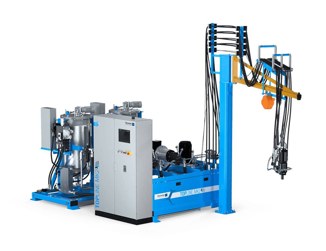 Globally, several thousand HK machines are successfully in use in almost all fields of application. The machine concept of the TOPLINE series comprises a sophisticated arrangement of the individual units, top-quality, first-class components, an ultramodern and user-friendly control system and state-of-the-art mixhead technology. The current TOPLINE generation is equipped with an intelligently revised machine concept and optimised standard features.