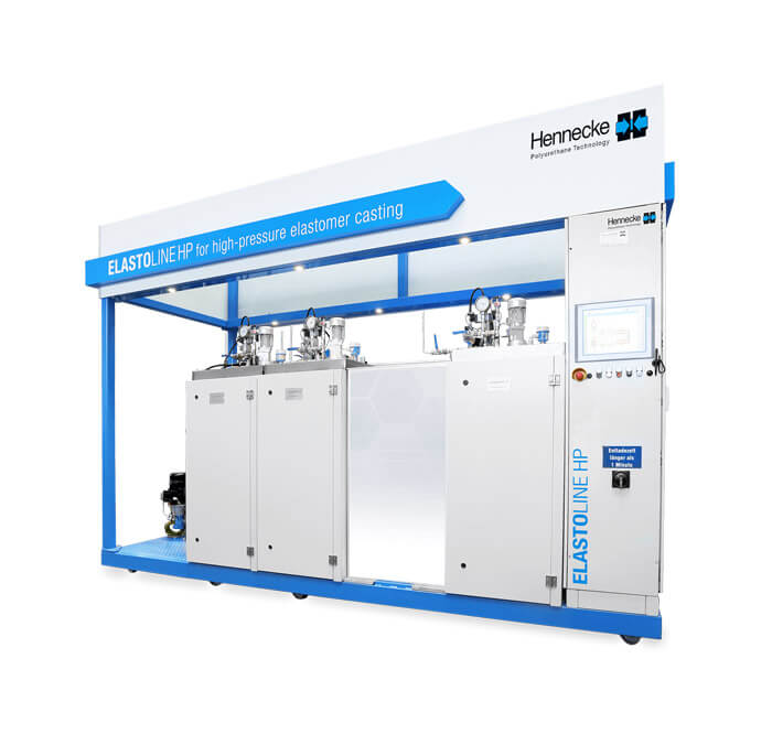 When it comes to processing casting systems or highly viscous components, Hennecke provides state-of-the-art systems technology as a basis for flawless, high-quality end products. The parts produced with these systems can be divided into solid and cellular elastomer products. Compact polyurethane elastomers are suitable for a variety of moulded parts, high-quality wheels and rollers and also semi-finished products for mechanical processing. These parts are used when maximum abrasion resistance as well as mechanical and physical strength are important. In contrast, due to their excellent material properties, polyurethane elastomers with a micro-cellular structure are used when considerably greater deformation and lower compression hardness are required compared to the solid elastomers. Users also benefit here of course from the advantages offered by modular configurable systems which are flexible and can be adapted to any application.